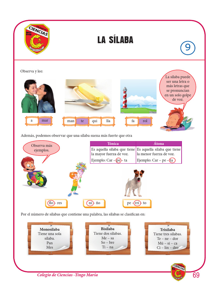 10. Separa en sílabas las siguientes palabras y reconoce su clasificación por el número de sílabas que contiene.