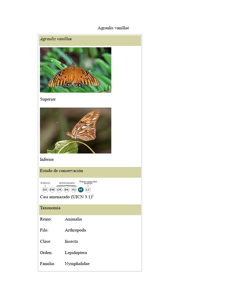 1. ↑ «Agraulis vanillae». Lista Roja de especies amenazadas de