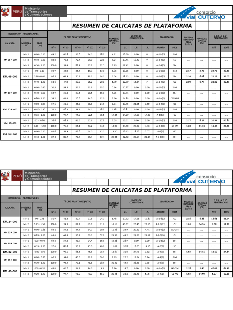 Resumen de Calicatas de Plataforma