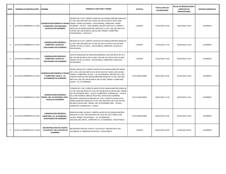 6 LO-09-632-009000985-N-6-2025 CARRETERA: CD. ALTAMIRANO – EN ACLARACIONES 28/01/2025 13:00 05/02/2025 14:00 GUERRERO