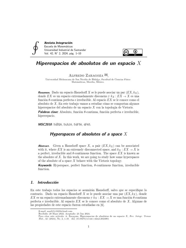 Para citar este artículo: A. Zaragoza, Hiperespacios de absolutos de un espacio X, Rev. Integr. Temas