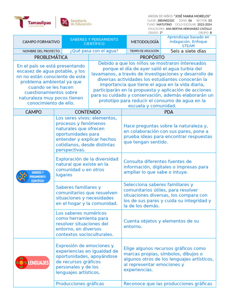 NOMBRE DEL PROYECTO ¿Qué pasa con el agua? TIEMPO DE APLICACIÓN Seis a siete días
