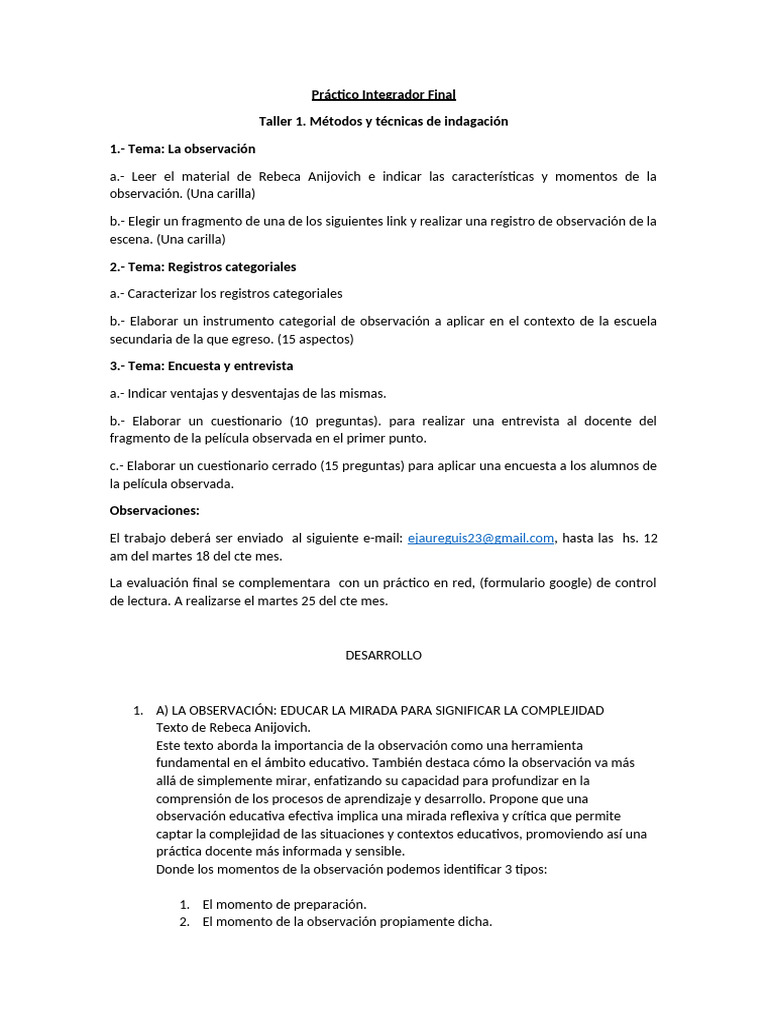 El trabajo deberá ser enviado al siguiente e-mail: ejaureguis23@[Link], hasta las hs. 12