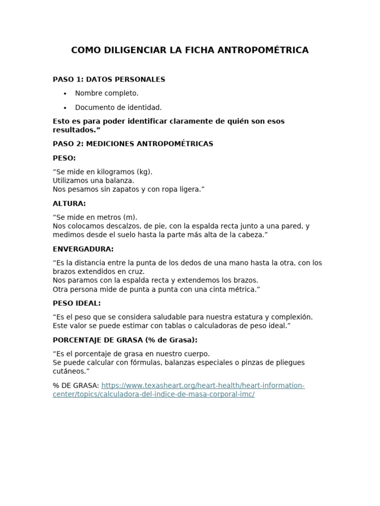 COMO DILIGENCIAR LA FICHA ANTROPOMÉTRICA