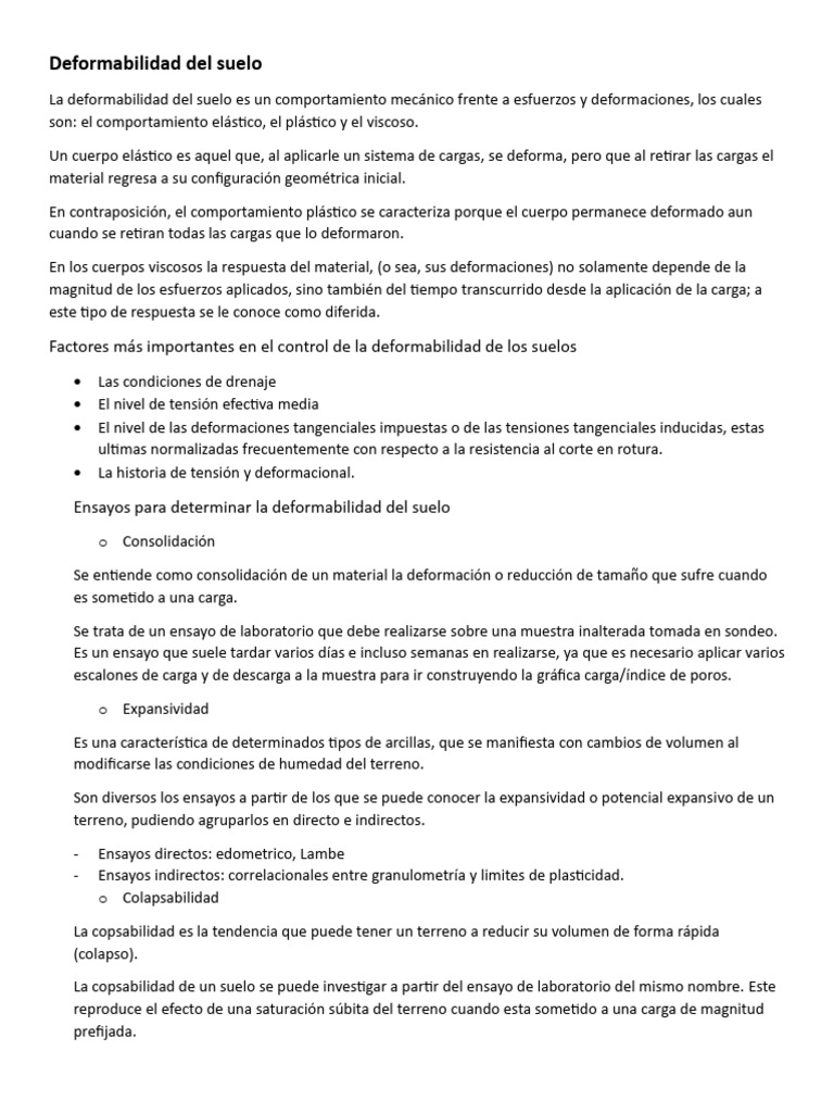 La deformabilidad del suelo es un comportamiento mecánico frente a esfuerzos y deformaciones, los cuales