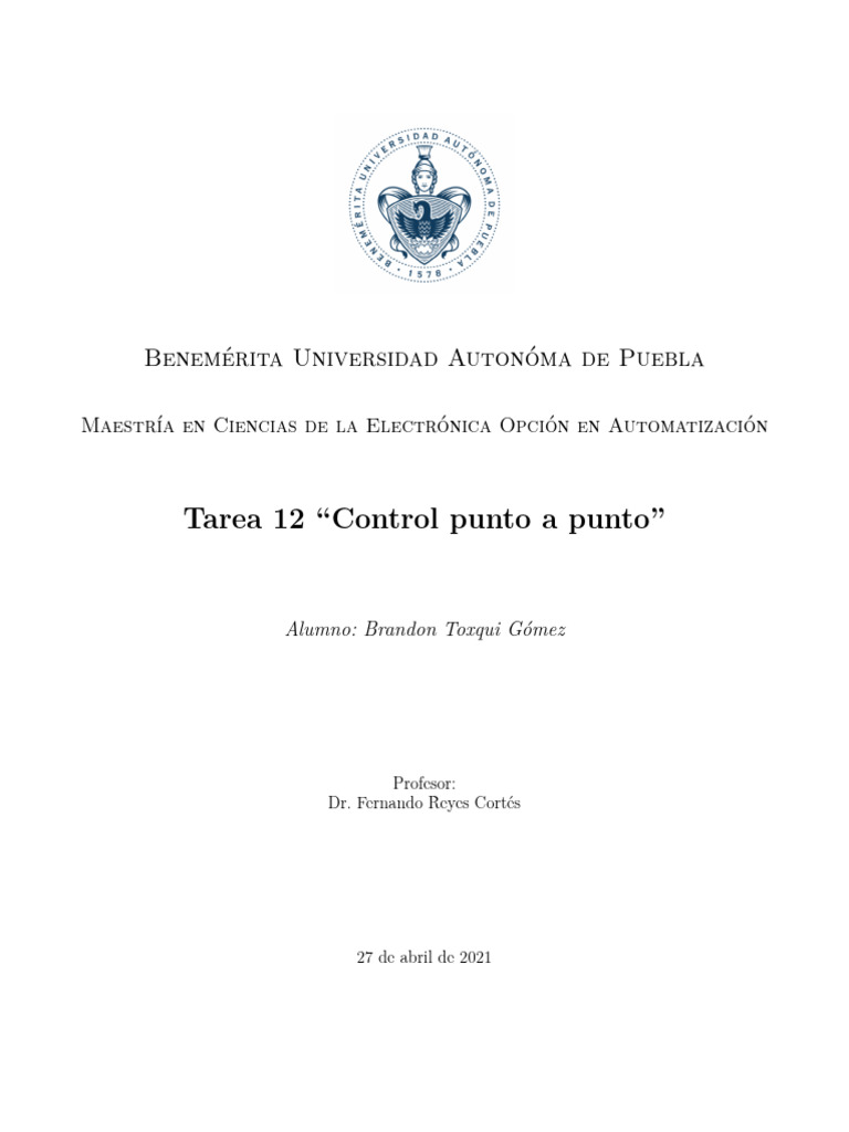 Diseñar un esquema de control para realizar la aplicación de control punto a punto