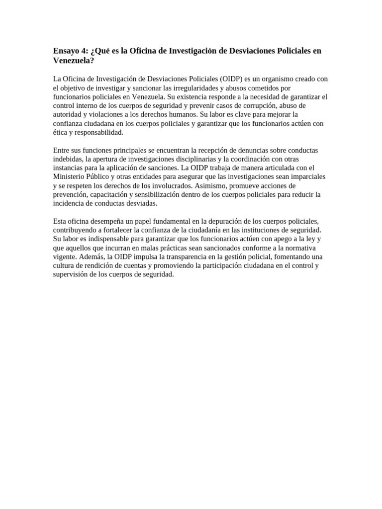Ensayo 4: ¿Qué es la Oficina de Investigación de Desviaciones Policiales en