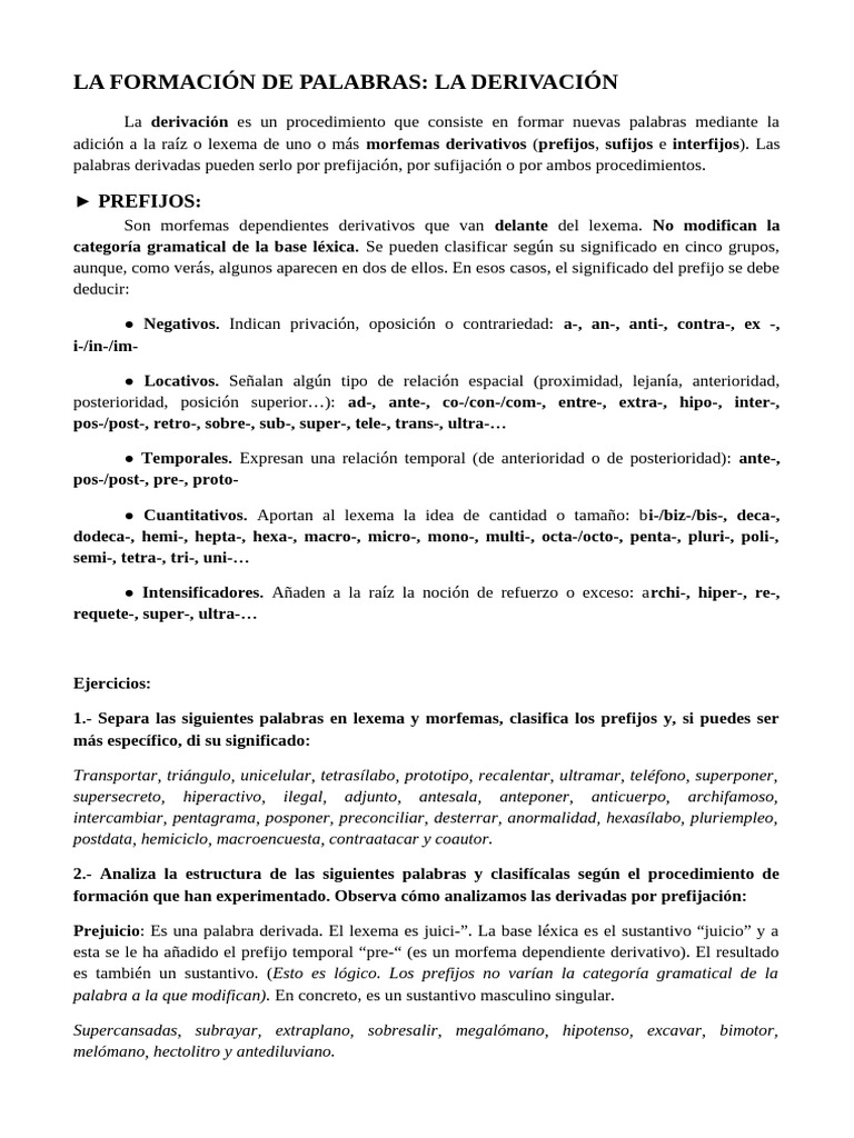 formación que han experimentado. Observa cómo analizamos las derivadas por prefijación:
