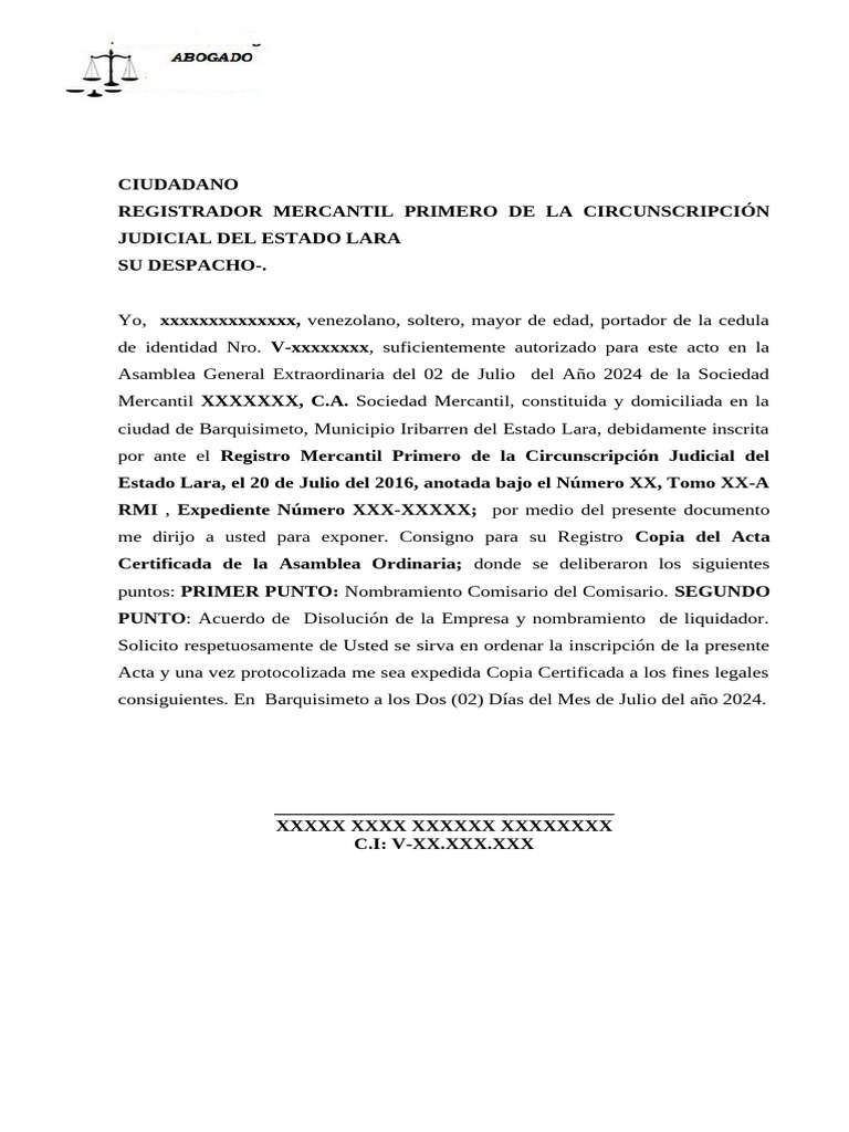 titular de la Cédula de Identidad Nº V-XX.XXX.XXX. Finalmente la Asamblea