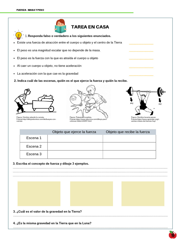 3. Escriba el concepto de fuerza y dibuje 3 ejemplos.