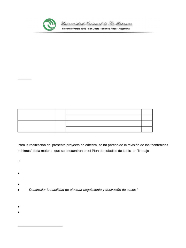 mínimos” de la materia, que se encuentran en el Plan de estudios de la Lic. en Trabajo Social (Plan