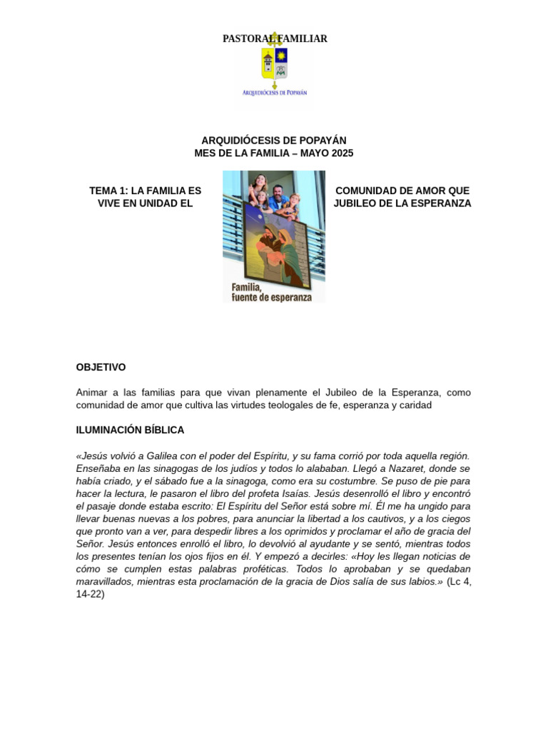 Animar a las familias para que vivan plenamente el Jubileo de la Esperanza, como
