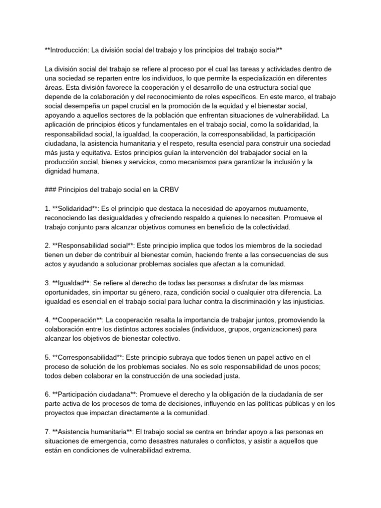 **Introducción: La división social del trabajo y los principios del trabajo social**