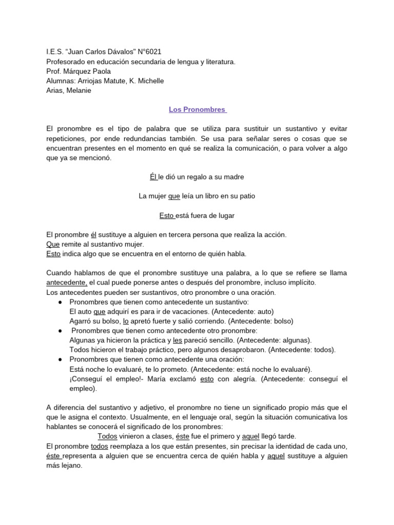 hablantes se conocerá el significado de los pronombres:
