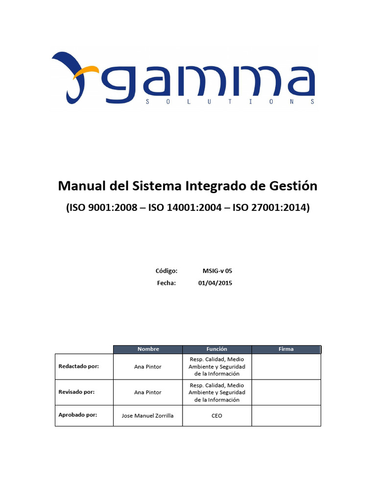 El sistema de Gestión de Seguridad de la Información de Gamma Solutions tiene como