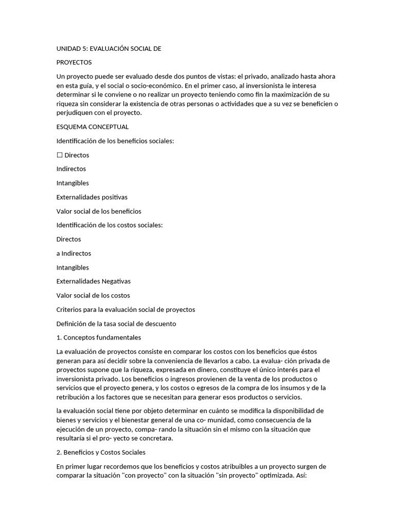 evaluación social de un proyecto?