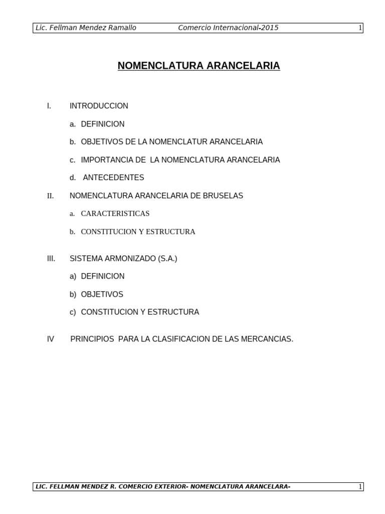 LIC. FELLMAN MENDEZ R. COMERCIO EXTERIOR- NOMENCLATURA ARANCELARA- 1