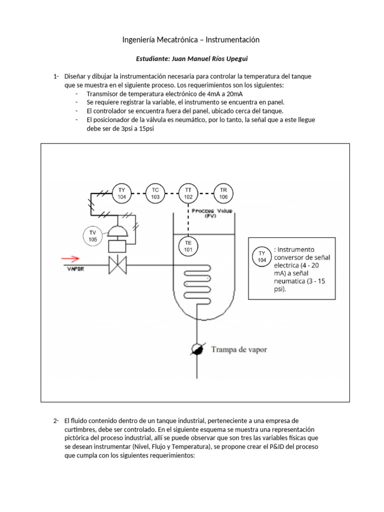 1- Diseñar y dibujar la instrumentación necesaria para controlar la temperatura del tanque