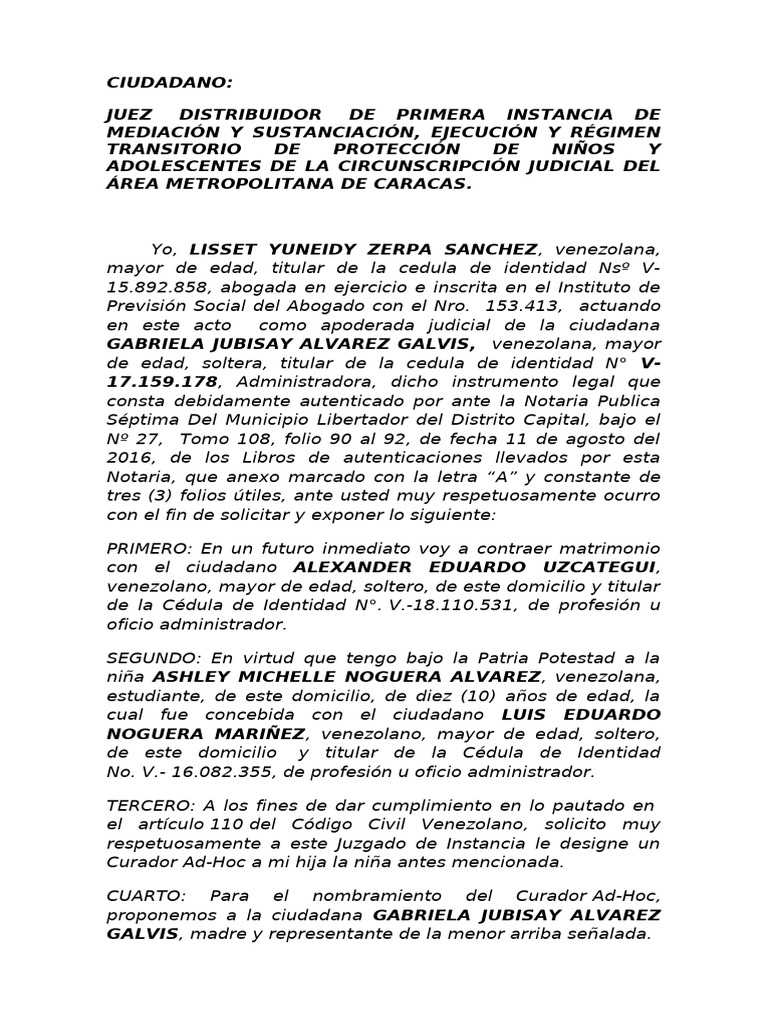 Curador Ad-Hoc a mi hija la niña antes mencionada.