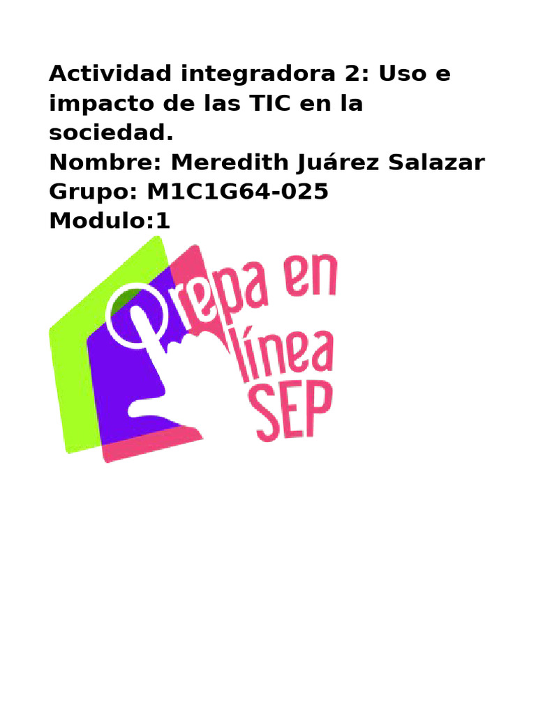 Actividad integradora 2: Uso e impacto de las TIC en la sociedad.