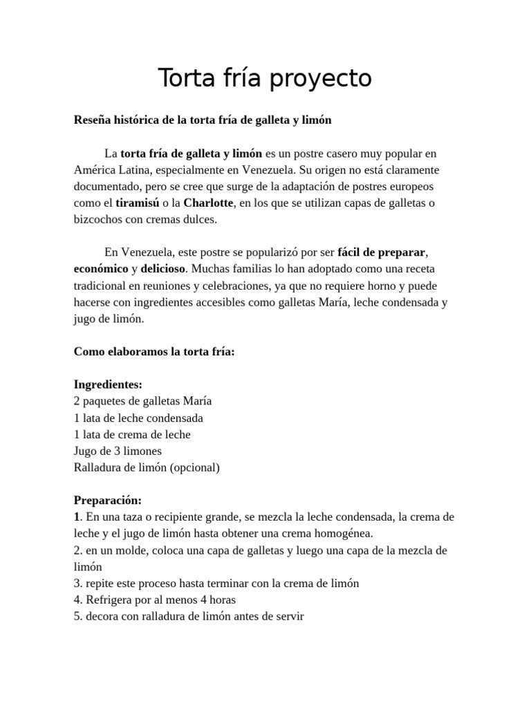 Torta fría proyecto