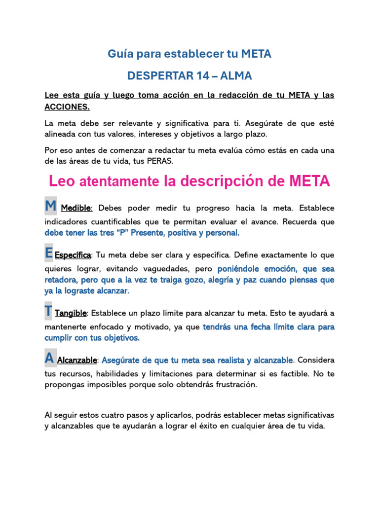 Lee esta guía y luego toma acción en la redacción de tu META y las