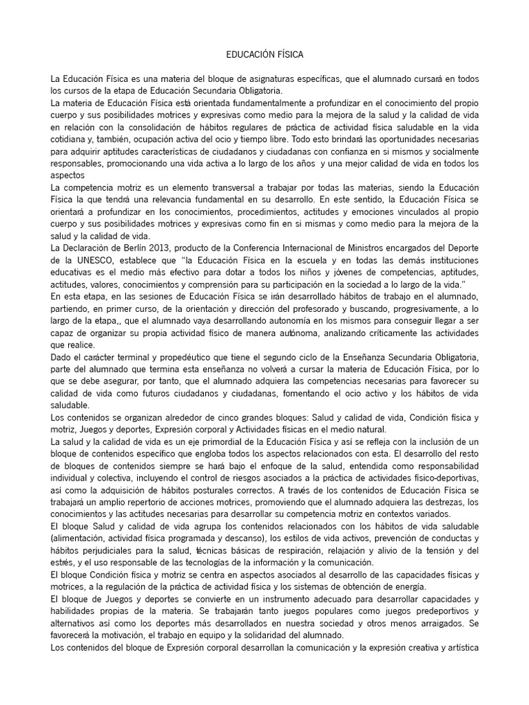 La Educación Física es una materia del bloque de asignaturas específicas, que el alumnado cursará en todos
