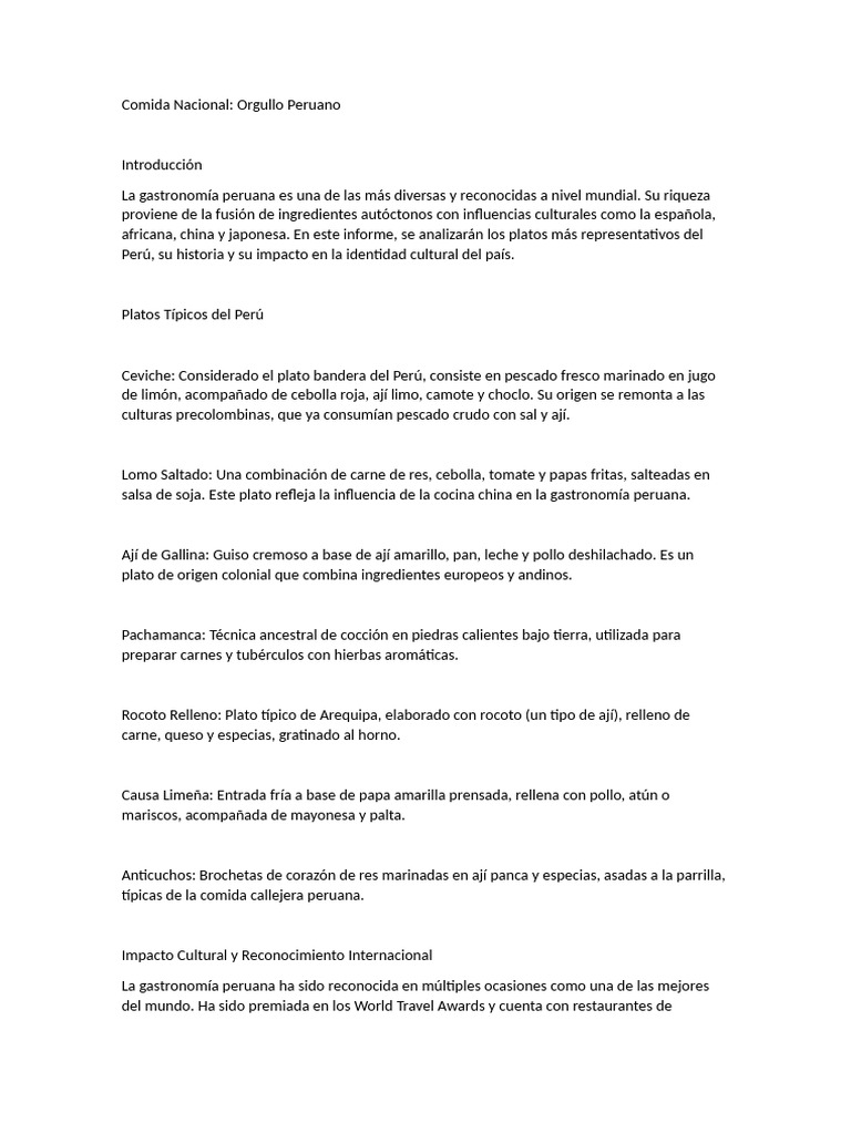 La gastronomía peruana es una de las más diversas y reconocidas a nivel mundial. Su riqueza