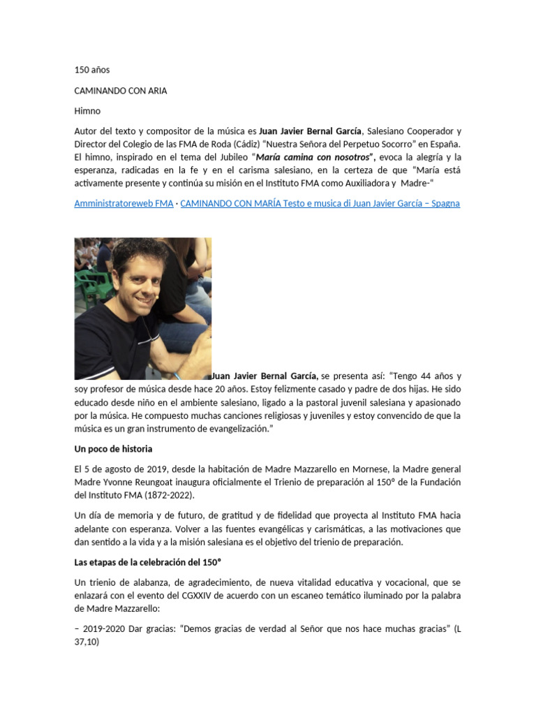 Amministratoreweb FMA · CAMINANDO CON MARÍA Testo e musica di Juan Javier García – Spagna