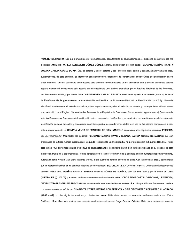 notariales y fiscales de ley. En la ciudad de Huehuetenango, departamento de Huehuetenango, a