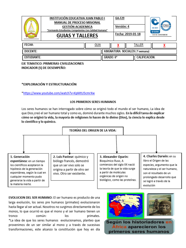 1. Cuál es la primera idea del origen del hombre.