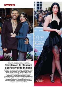 Isabel Preysler reaparece tras cinco meses de ausencia, asistiendo al Teatro Real de Madrid con su hija y yerno, mientras se rumorea sobre su deseo de jubilarse de la vida pública. En el Festival de Málaga, varias celebridades se destacan, incluyendo a Milena Smit y Silvia Abascal, mientras que la influencer Violeta Mangriñán interactúa con el público. Además, se mencionan las relaciones y situaciones personales de varias figuras del entretenimiento, incluyendo a Risto Mejide y su nueva pareja, así como la situación de Cristina Pedroche y Dabiz Muñoz.