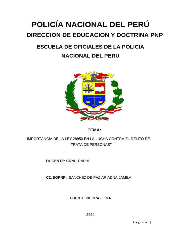 Esta monografía tiene como objetivo analizar la importancia de la Ley 28950 en