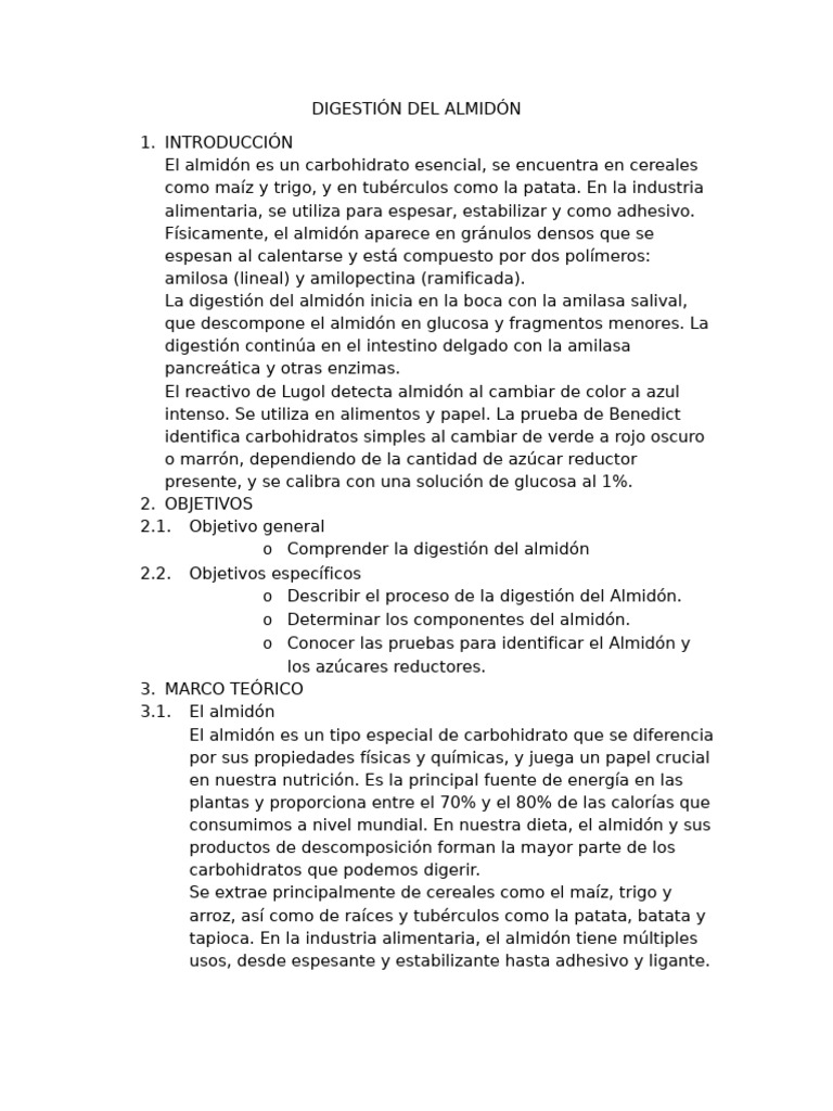 mediante la prueba de Lugol antes de la digestión, mientras que el