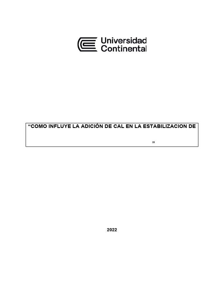 capacidad de soporte. Por ende, el suelo deberá ser estabilizado con el uso de cal para