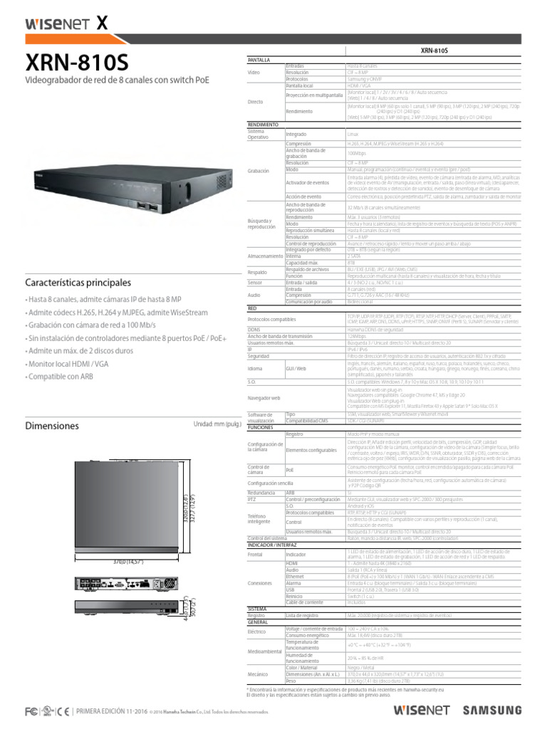 PRIMERA EDICIÓN 11-2016 © 2016 Hanwha Techwin Co., Ltd. Todos los derechos reservados.