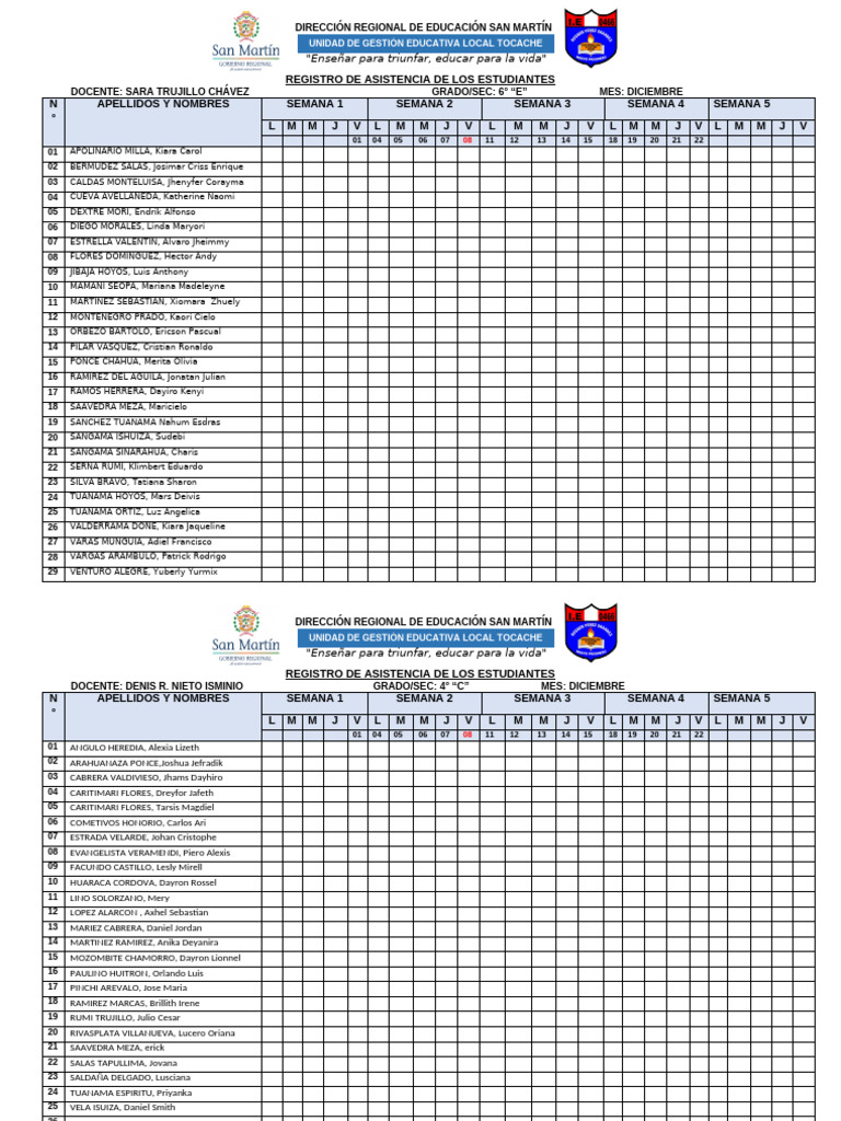REGISTRO DE ASISTENCIA DE LOS ESTUDIANTES