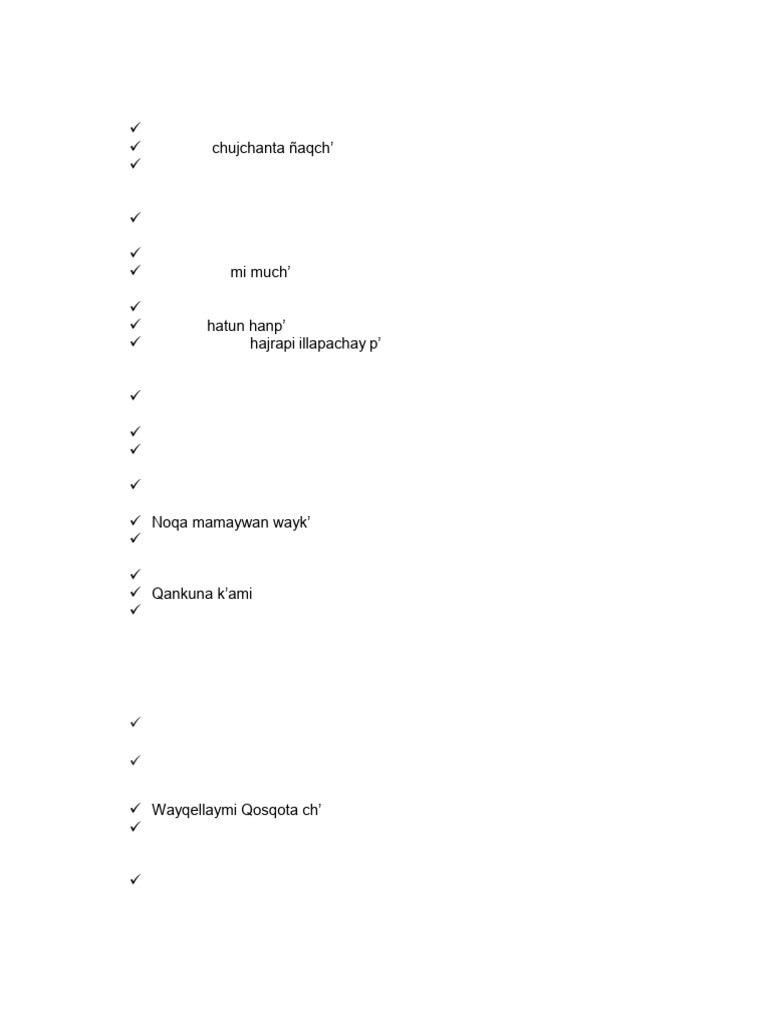 Kunan p’unchayllan ipay qosqoman ch’usashan = Hoy día nomas mi tía