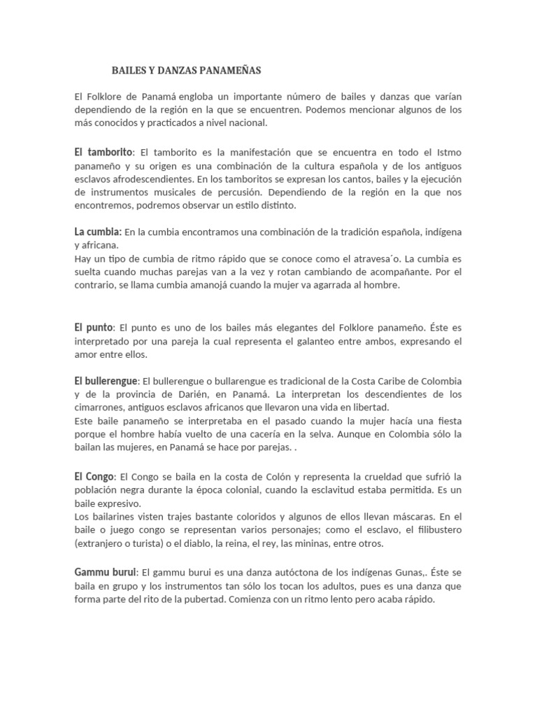 El Folklore de Panamá engloba un importante número de bailes y danzas que varían