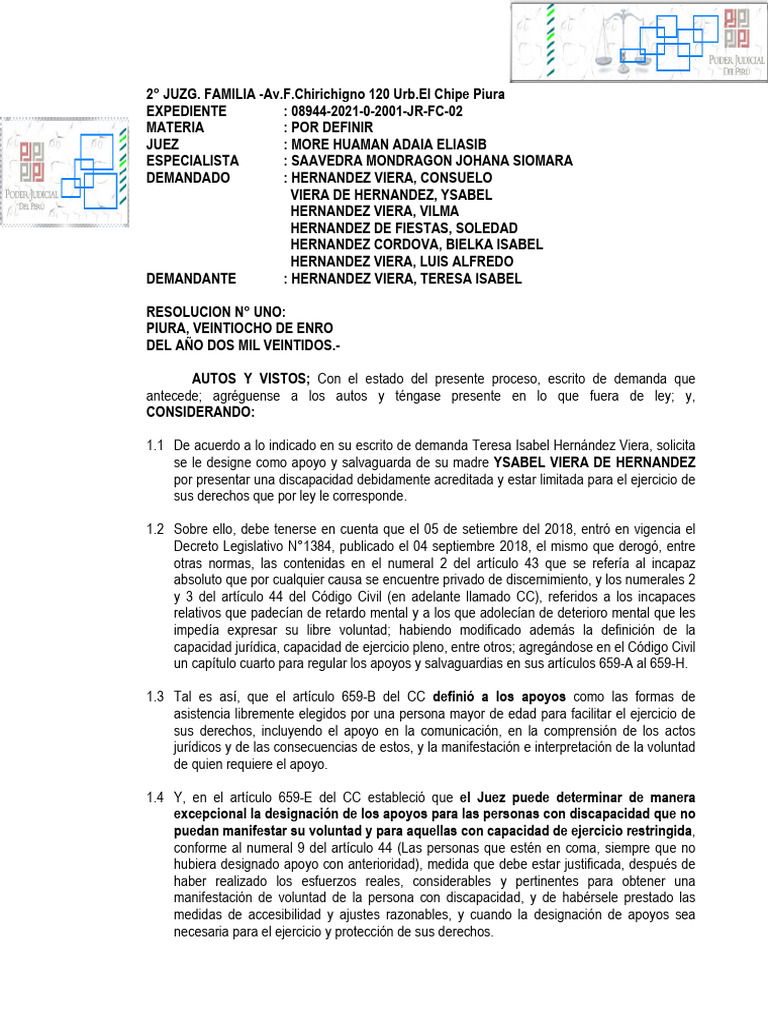 de apoyos y salvaguardias presentada por TERESA ISABEL HERNÁNDEZ VIERA, a
