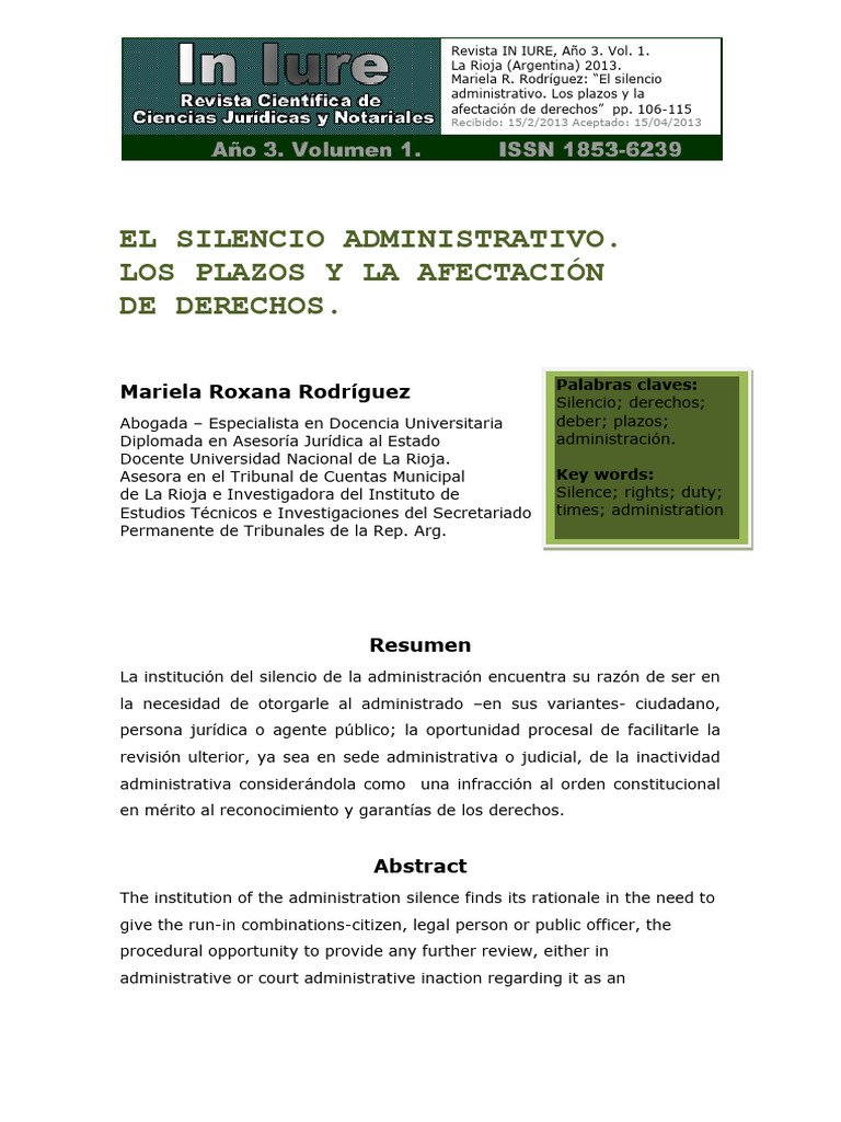 RODRÍGUEZ, M. R. (2013) “El silencio administrativo. Los plazoz y la