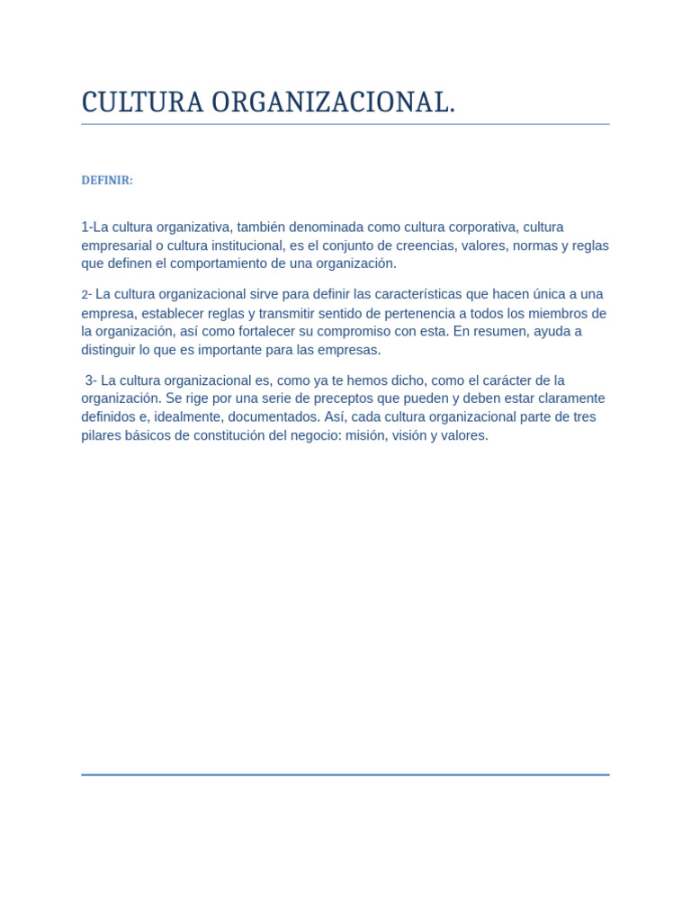definidos e, idealmente, documentados. Así, cada cultura organizacional parte de tres