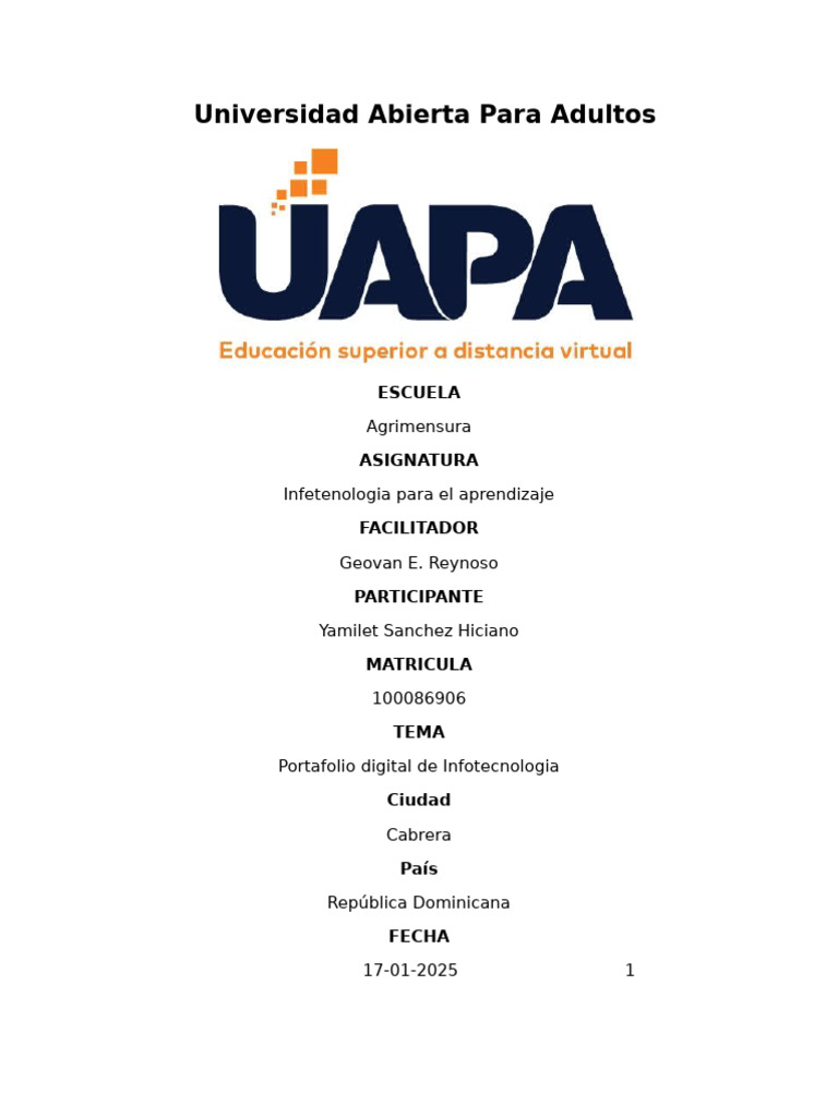desde el inicio hasta el final de la asignatura de infotecnologia,