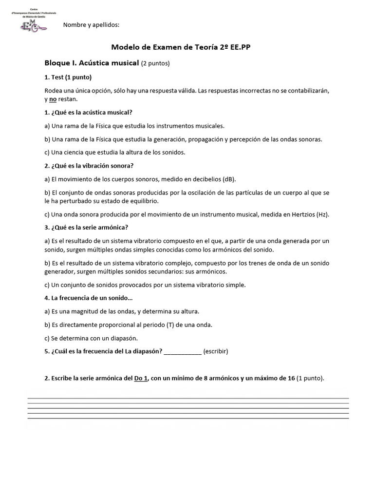 Bloque I. Acústica musical (2 puntos)