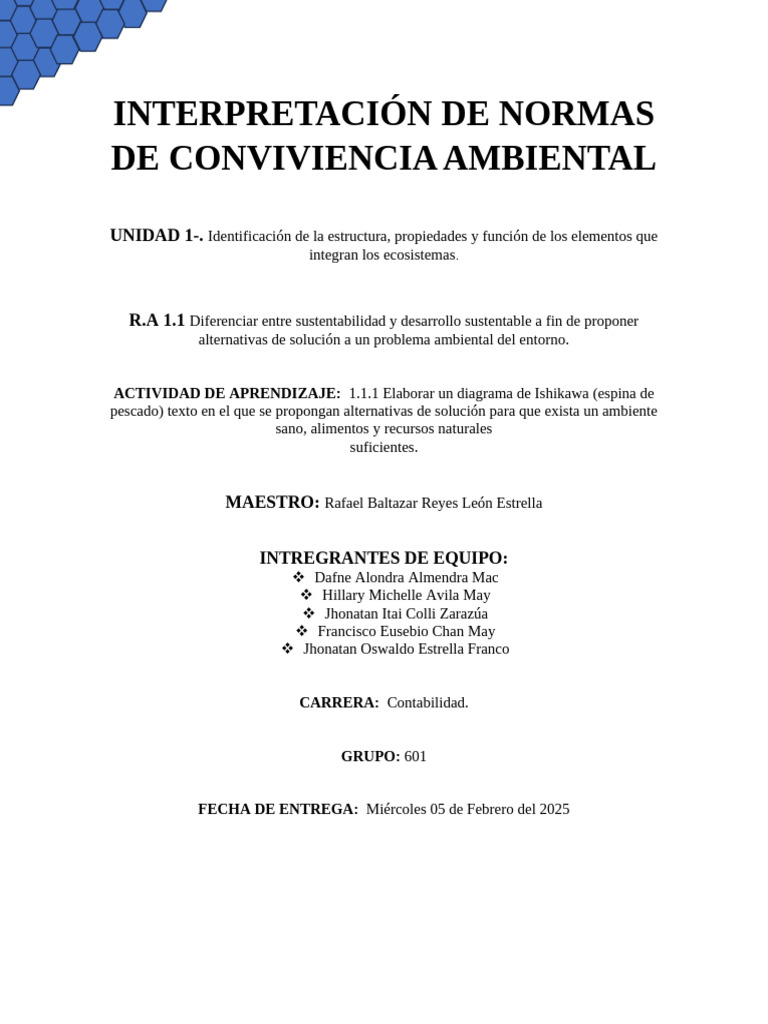 ACTIVIDAD DE APRENDIZAJE: 1.1.1 Elaborar un diagrama de Ishikawa (espina de