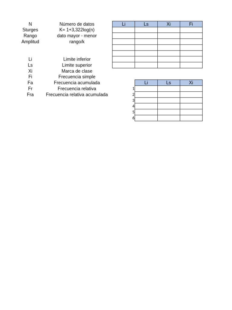 N Número de datos Li Ls Xi Fi