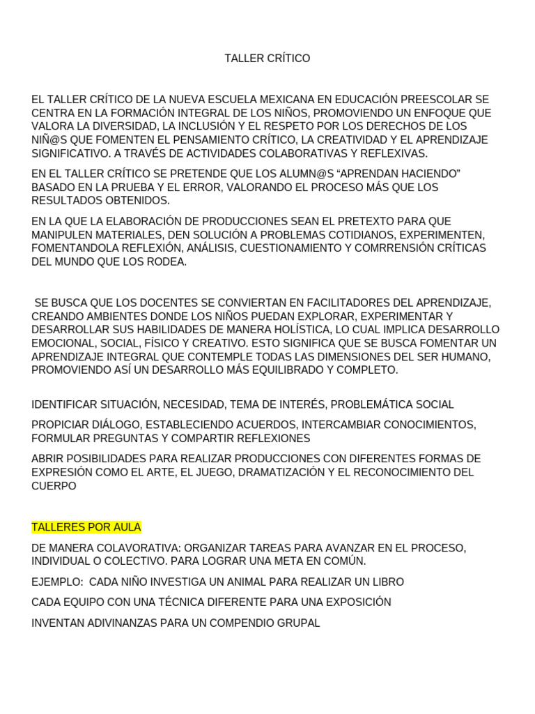 EL TALLER CRÍTICO DE LA NUEVA ESCUELA MEXICANA EN EDUCACIÓN PREESCOLAR SE