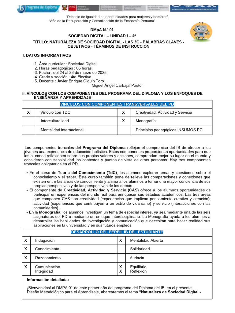 ¡Bienvenidos! al DMPA 01 de este primer año del programa del Diploma del IB, en el presente