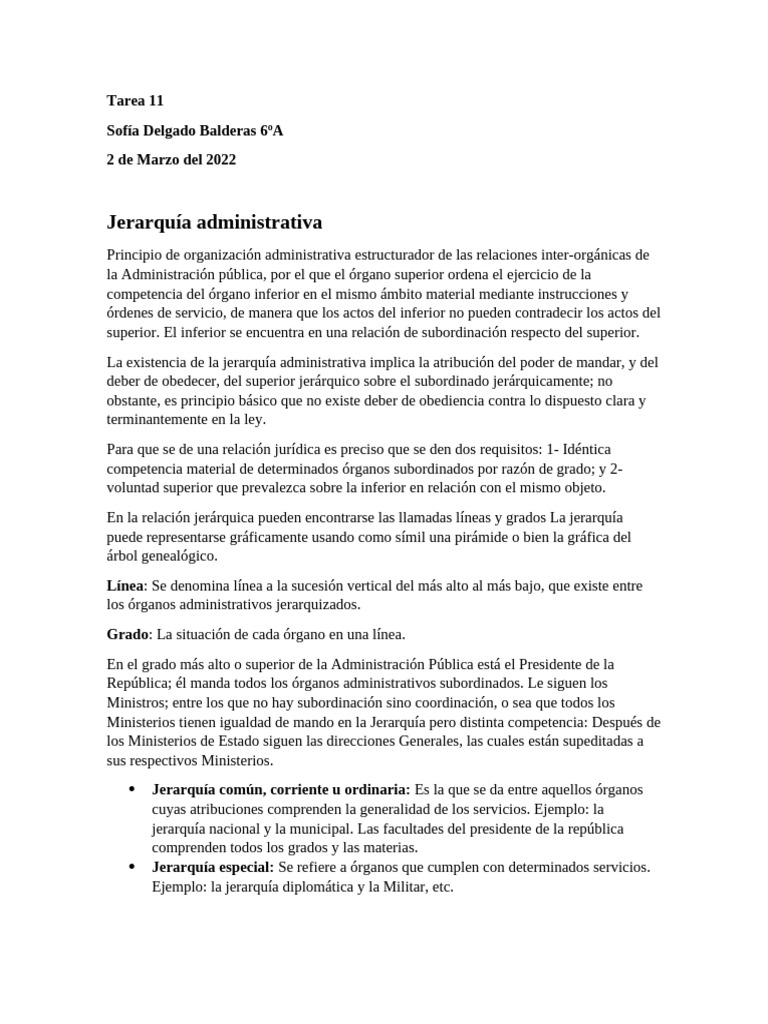 Jerarquía burocrática: se refiere a los órganos unipersonales o individuales.