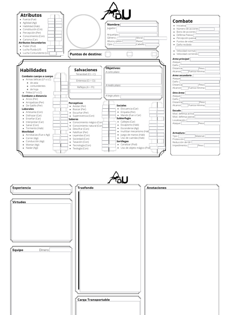 Acrobacias (Fue o Agi) 1d4 Leyendas (Con) 1d4 Juego de manos (Hab) Tipo: Material: